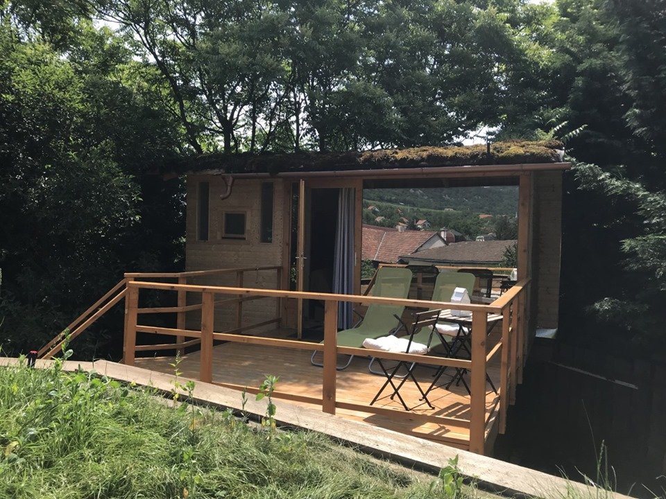 Közvetlen a Hobbit Ház felett, a lombok között sincs még vége a szemkápráztató dolgoknak. Ott rejlik ugyanis a ürömi Cottage mohatetős lombháza. A kompakt kis épület hozza az elvárt igényeket, modern, ugyanakkor mindenhonnan a fa megnyugtató illata is érezhető. Romantikázásra, kiscsaládos elvonulásra is tökéletes, arról pedig nem beszélve, ha ennek a kis mesebeli háznak a teraszára kiállsz, pompás panorámában gyönyörködhetsz, a Pilisi medencében
