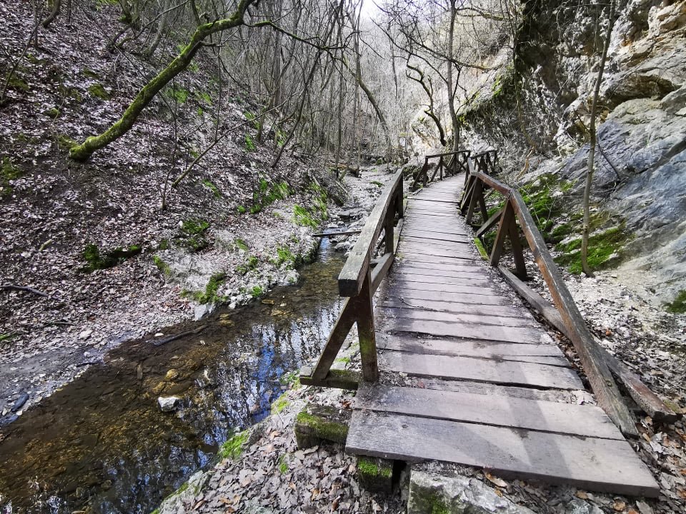 Ez pedig a Dera-szurdok, mely a Pilisben, konkrétan Pilisszentkereszt közelében található, kb. 0,5-1 órára Budapesttől. Nem egy tipikus rejtett kincs, alapvetően rengetegen keresik fel egy átlagos hétvégén. Kivéve most, hétköznap, egy hűvösebb, de napsütéses napon. (Azt azért hozzá kell tennünk, hogy nincs kitáblázva, nem vezetnek oda feliratok, ezért soha nincs akkora tömeg, mint pl. Szentendrén vagy Dobogókőn.)